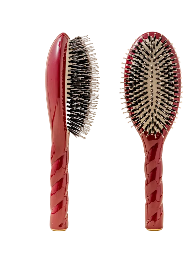 A beautifully crafted everyday brush designed for sensitive scalps and delicate hair. Made with a blend of natural boar bristles and soft nylon pins, it gently detangles while redistributing natural oils for healthier, shinier hair. Hand-assembled in France, it turns daily brushing into a soothing self-care ritual.
