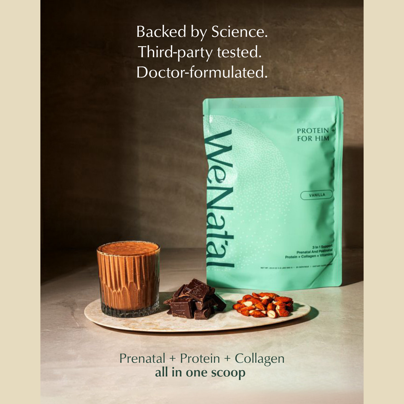 WeNatal Protein + for Him combines 20 essential nutrients, 20 grams of protein, and collagen peptides—all in one scoop.