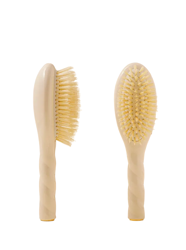 Specially designed for children's sensitive scalps, the baby hairbrush is made from white boar bristles. Soft and supple, these fibers detangle knots with the utmost delicacy.