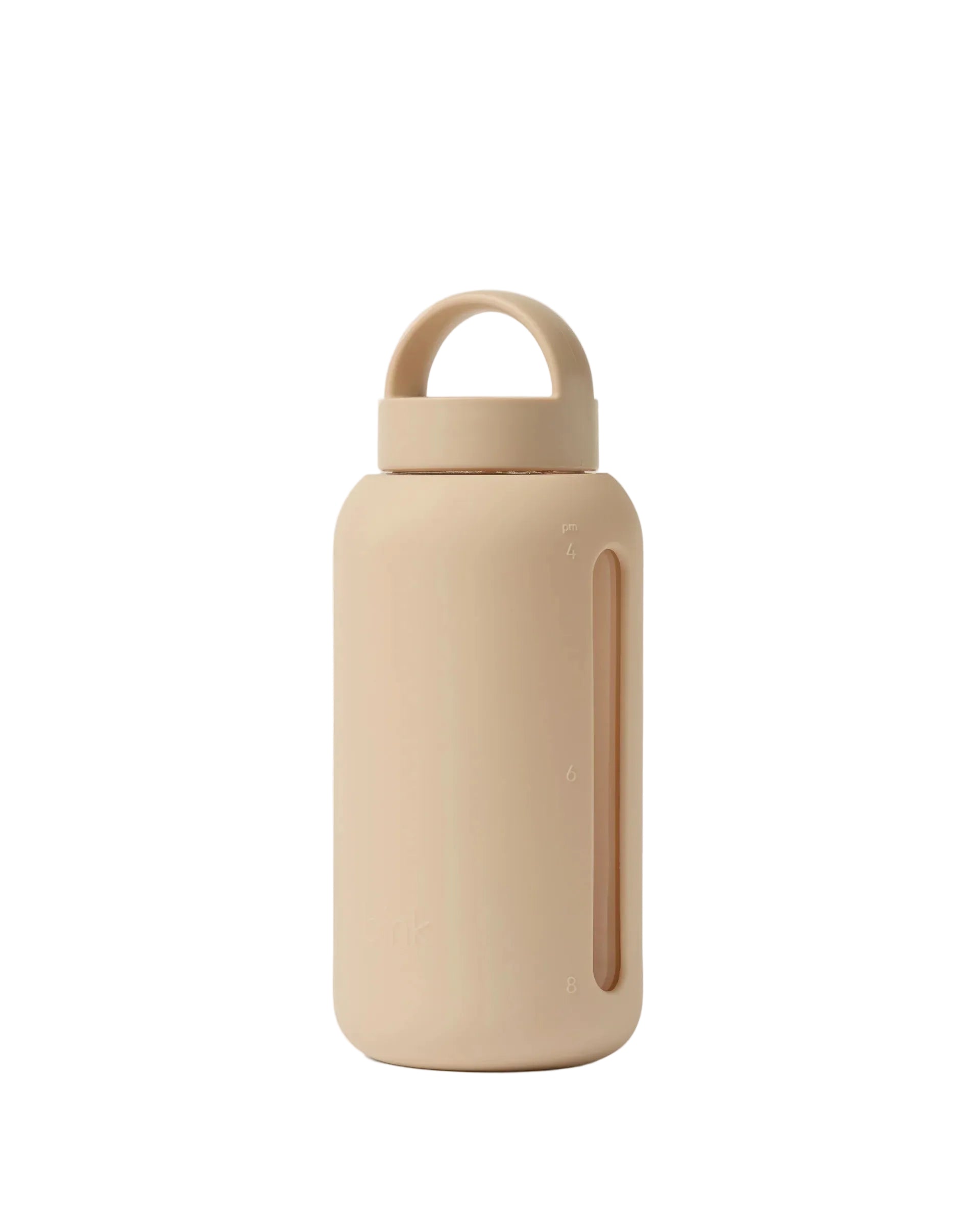 The first glass hydration tracking bottle designed to help you drink the recommended amount of water each day. Featuring simple-to-follow am/pm markings to guide you.